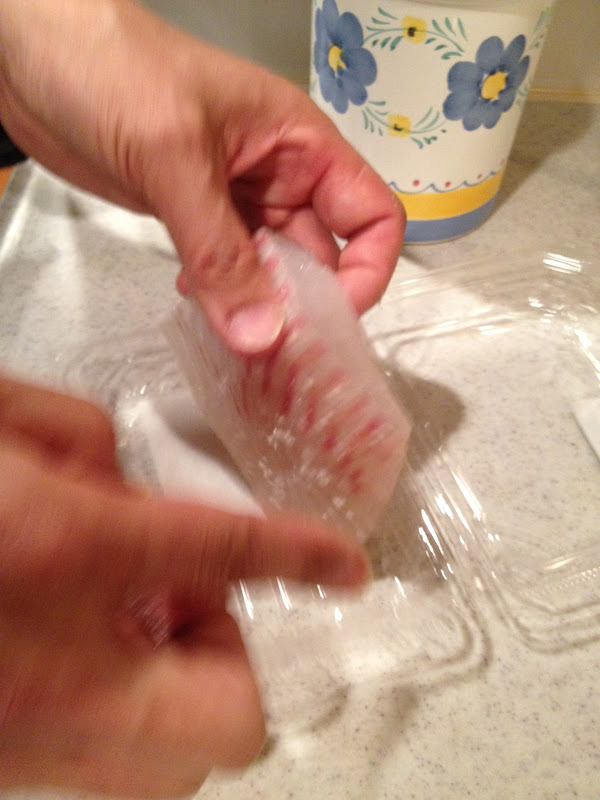 鯛をラップで包み冷凍庫に少し凍るまで入れます。